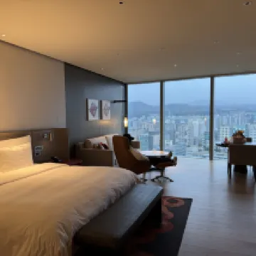 The Grand Hyatt Jeju was a perfect experience! The location is super convenient, close to the airport and a one-stop shop for shopping. The 38th-floor sky lobby offers an incredible view. The room was spacious and clean, with panoramic floor-to-ceiling windows that provided a healing view of the sea and sunset. The service was attentive and Chinese-friendly. The facilities are new and complete, and the dining options are plentiful and high-quality. It's my top choice for a relaxing vacation, and I'll definitely stay here again on my next visit!
