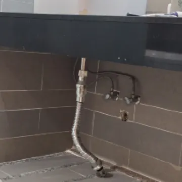 My arms and clothes got wet because of the high sink that only tall people would use,