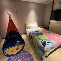 It's just right for a family of four. The kids like it very much. Unfortunately, we encountered a red storm and couldn't go to the nearby children's park as planned. There are many places to eat near the hotel. The service attitude is very good