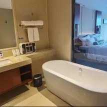 This hotel is close to Jiaxing Sport Stadium and around 10 mins drive to Nanhu Tiandi. The hotel lobby is not that big and lift is a bit slow. The family room is big and oversee the new Jiaxing sport stadium. Didi is convenient to travel around the place. We visited the 湖心岛 and 烟雨楼 on our 2nd day. The scenery there is beautiful and amazing! Will definitely visited the place again!