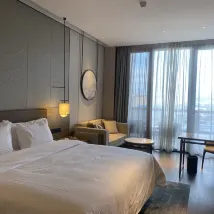 The hotel has a very good environment. It is located uphill. The lobby on the fifth floor is right at the entrance. The concierge helped take the luggage back to the room. The service attitude was warm and thoughtful. The room was also large, clean, spacious and bright. The bedding was also very comfortable. The overall experience of this stay was satisfactory. Rose, the guest service manager, contacted me through work WeChat before I checked in and provided help. She gave the hotel an overall good review. I will come often to support.