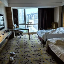 The front desk service was excellent. They helped us upgrade to a suite so we could rest with our kids. They also gave us a small gift when we left the hotel. The Quanzhou snacks for breakfast tasted great. But the accident happened too suddenly. The sink in the toilet in the room leaked. When I turned on the faucet, the toilet was flooded. This was a bad experience.