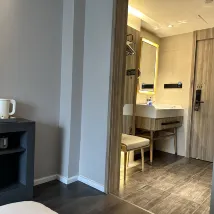 The service attitude is good. The lady also gave me a breakfast, which is also very good. The environment is very good and clean. The room has separate wet and dry areas. The location is very convenient. It is a boutique hotel next to the train station.