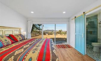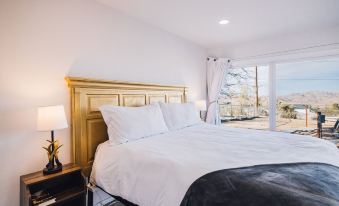 BEDROOM: Retreat to 3 comfortable themed bedrooms after an exciting day at Joshua Tree National Park. Master bedroom with King-size bed and an ensuite bathroom. Sliding glass doors from master bedroom leads to the backyard with a luxurious spa and a swimming pool. Bedroom 2 with Queen bed, and 3rd bedroom with full and twin bunk beds. All room are equipped with premium mattress, pillows, linens and sheets.
