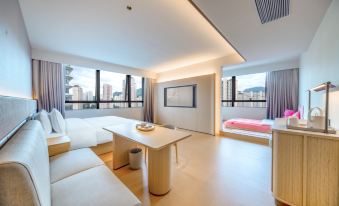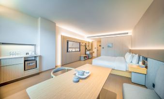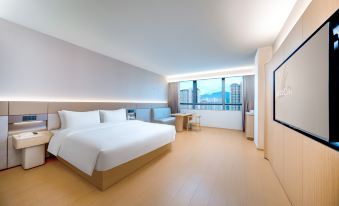selection, lighting design and space layout, the hotel creates a simple but not simple aesthetic. The interior is simple and elegant, designed to provide guests with a warm and comfortable stay. Hotel rooms are equipped with full voice intelligent control system, provide softand comfortable bed linen and high quality toiletries to ensure the comfort of guests.In addition, the hotel also has a specialty tea space, gym, laund romatand large underground/surface parking, offering thousands of free parking Spaces to ensure guests can rest and relax during the trip.