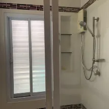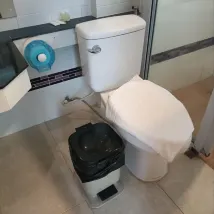The bathroom isn't that clean. The spray hose and hanger are on opposite sides, making it difficult to use. If people are working, they can sleep.