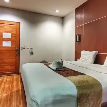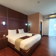 The room is quite old, especially the bathroom. It is not clean and there is black mold everywhere. However, the bed is usable and not sagging. It is suitable for a place to stay on the way back to Bangkok. Breakfast includes rice soup, rice with one dish and bread and coffee. It is considered reasonable for the price.