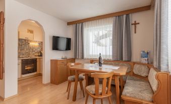 Apartment house "Apart Romantica". 5 apartments in the property. In the district of Untermühl 1.5 km from the centre of Kappl, 12 km from the centre of Ischgl, 20 km from the centre of Landeck, in a sunny position on a slope. In the house: storage room for skis, ski boot dryer. Bread roll service. Shop 1.5 km, grocery 1.5 km, bus stop "Kappl Niederhof" 190 m, railway station "Landeck-Zams Bahnhof" 21.2 km. Ski lift 2.5 km, gondola lift 2.5 km, ski bus stop 5 m. Please note: the owner lives in the same residence. Member for Silvretta Card Premium: valid from summer 2023 - unlimited use of all open mountain railways and local public transport in Paznaun, Samnaun and Montafon/Brandnertal, as well as unlimited use of the Silvretta High Alpine Road. "Apart Romantica", 2-room apartment 42 m2 on 1st floor. Bright, simple furnishings: living/sleeping room with 1 double sofabed, dining nook and satellite TV. 1 double bedroom. Open kitchen (4 hot plates, oven, kettle, electric coffee machine). Shower/WC. Heating. Parquet floors, carpet. Beautiful panoramic view of the mountains and the valley. Facilities: Internet (WiFi, free). Parking (roofed, 1 car). Please note: non-smokers only. Smoke alarm, fire extinguisher. When there are less than the maximum number of guests staying at the property, not all of the housing units will be available for use.