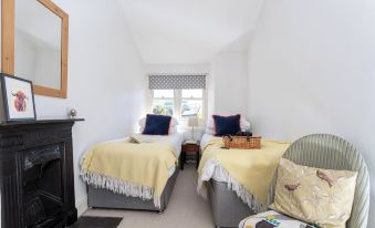The master bedroom on the first floor has a special custom-made raised bed, offering a unique sleeping experience. Don't worry we provide a step to help you get in and out of bed with ease! You can also enjoy some downtime with the TV provided in the room. There is plenty of space to hang your smart jackets and posh frocks in the wardrobe, or in the room, off the master bedroom where cases can also be stored. Next door, the twin room is equally comfortable with cosy beds, as well as a chest of drawers and some hanging space. It has views of Benson Knott in the distance!