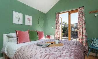 The newly decorated, fresh, ground floor garden bedroom is ideal for extra privacy and convenience. It has a Get Laid handcrafted double bed with a comfortable mattress, a chest of drawers, and some hanging space. The wet room en-suite has a shower, sink, and WC, complete with heated towel rail for your comfort.