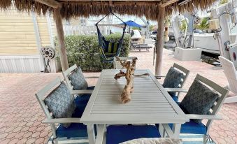 Enjoy fresh air and bay breezes in the screened-in lanai, or head out to the outdoor patio featuring a tiki hut, BBQ grill, hammock, and flat screen TV—the perfect setting for watching stunning Key Largo sunsets or catching the game while you grill.