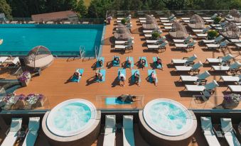 We have spent a couple of days in the hotel, the swimming pool, lazy river, pool bar area and chilling great. I strongly recommend the breakfast, there is a good choice(eggs, bacon, American pancakes, polish sausage, cheese croissant and more) , same goes for lunch/dinner served between 17-20.... There were some minuses to our stay , the queue for checking in, reception without smile, lifts, in the room carpet needs a clean,mattress covers make you sweat. We were a bit unlucky to have noise neighbours as well, who carried on till small hours.