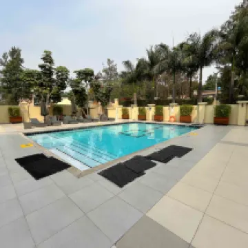 I had a fantastic stay at this hotel. The service was great and friendly, both at check-in and during my dining experience. I particularly enjoyed the breakfast options, which were diverse and delicious. The gym was well-equipped and offered nice views of the pool. The location is convenient and in a newly developed area. I highly recommend this property!