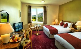 The Castlerosse Park Resort is a beautiful resort nestled in the middle of Killarney national park. My husband and I and our two children spent two nights and the accommodations were perfect as they even had a rollaway bed set up for my son the resort offers bike rentals, which were perfect to ride all the different bike trails around Killarney, some as to which even led you into the main street of downtown and to close tourist sites like Ross Castle and Mike Ross Abbey. Killarney riding stables is located right across the street from the resort which was super convenient as we made reservations for horseback riding throughout the national park. Overall, the resort was amazing and very welcoming! I had asked the front desk if they would do something special for my daughter‘s birthday and they happily agreed. Leaving her a sweet note and a beautiful box of chocolates in our room to be surprised with. Everything about this resort and this special town is mesmerizing, and our whole experience was truly magical.
