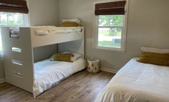 3 bedrooms: 2 bunk beds 1 single bed 1 queen bed and 1 king bed