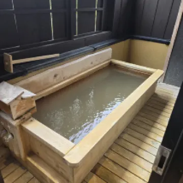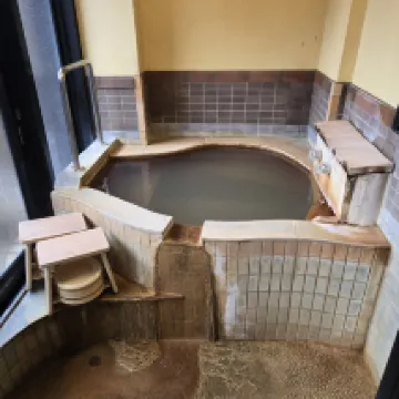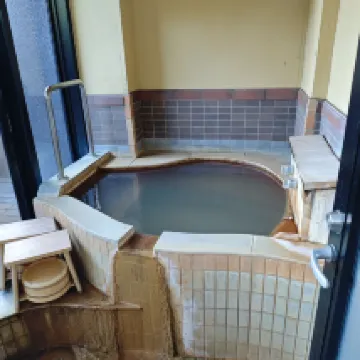 The large bath was not open, but there was a hot spring in the room, and two people could bathe at the same time. The hot spring was very good. We lived on the second floor and there was no elevator, so we had to carry our luggage up the stairs by ourselves, which was unexpected.