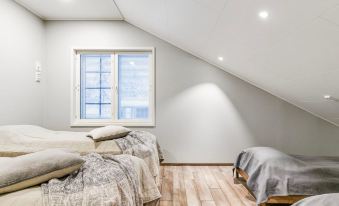 The living room/kitchen provides plenty of space for spending time together. The utility room is equipped with a washing machine, dryer, and sink. The sauna and comfortable bathroom offer a perfect setting for relaxing sauna moments.