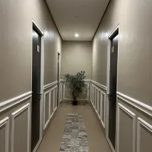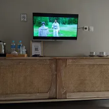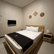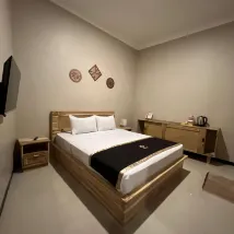 The inn's parking lot has motorbikes and cars, which I think is easy to park motorbikes, if you have a car you have to be patient because it's at a big road intersection. The receptionist is reliable, there is also a sofa in front of the receptionist so you can wait for check-in or check-out time. There is also a refrigerator for drinks sold such as mineral water, milk, fruit drinks, coffee, and more. We got a room downstairs, right in the corner. The room is nice, modern. Complete facilities include welcome drinks, coffee drinks, tea sachets, sugar, along with a kettle heater. LED TV with Netflix. The bathroom has a sink, hot water, two towels, a set of toiletries, a gargling glass, the built-in shower is okay, it can be regular water, warm or hot, there is also an ablution tap with warm water. The bedside lamps are all on. Maybe the inn is not suitable for those who want to sleep and need peace because the location is right at the intersection, so at night you can hear the sound of motorbikes racing. The road atmosphere was calm for a few hours, then noisy again with the sound of motorbikes. That's my only drawback. The staff are friendly and kind, understand the booking system at this inn. Provide the inn's business card for booking confirmation via WA