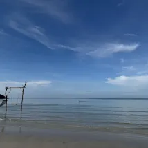 The sea is calm and clean. The sand is white, the entrance is very shallow. There are low tides, but not big ones.