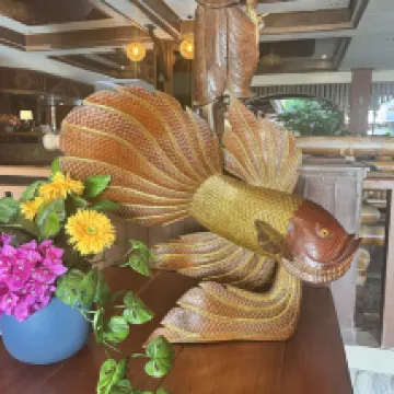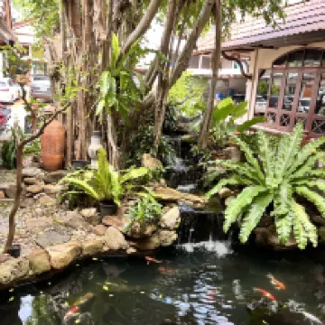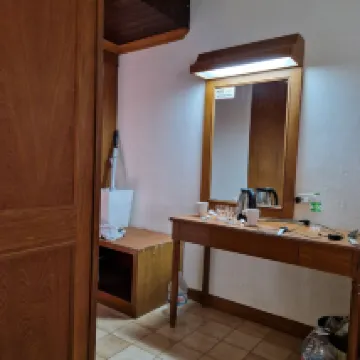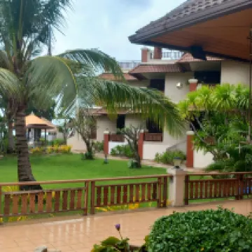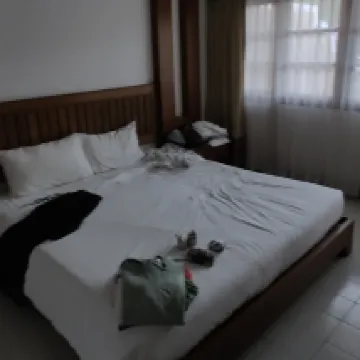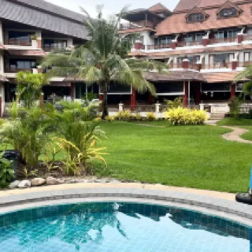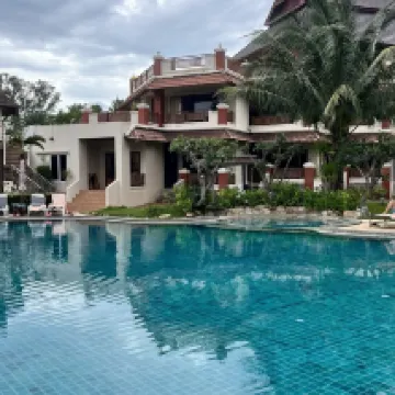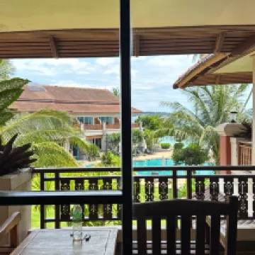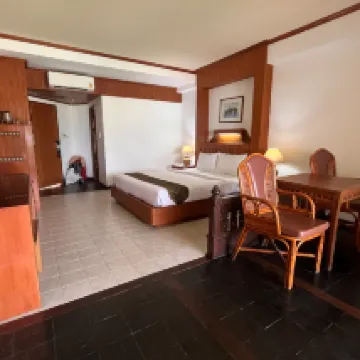 I stayed with my son in a deluxe room with a sea view in August 2025. The room is large enough. The room has a small refrigerator, TV, kettle and air conditioning; no safe. The furniture is old, the beds have comfortable mattresses, slightly hard pillows. There are a lot of ceramics and wooden carved decorations in the hall and around the area. The pool is about 15 meters long of different depths with 2 shallow bowls for babies. Beach towels are brought to the pool late, usually after 10 am. There is little shade from the trees in the sun lounger area. Standard breakfasts: vegetables, 4 types of fruit, fried eggs or omelette, sausages, changing hot dishes (noodles, stewed vegetables, chicken ...). In our room, the roof half covered the balcony, in other rooms in the right wing of the building the roof was full. The location of the hotel is convenient. Not far from 7eleven, a tour desk, shops .... The night market is 20 minutes at a leisurely pace. I recommend the hotel for a holiday. The staff is friendly. Of the negative points - poor room cleaning.