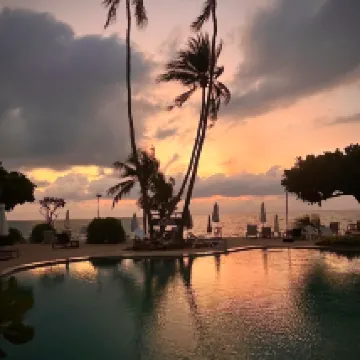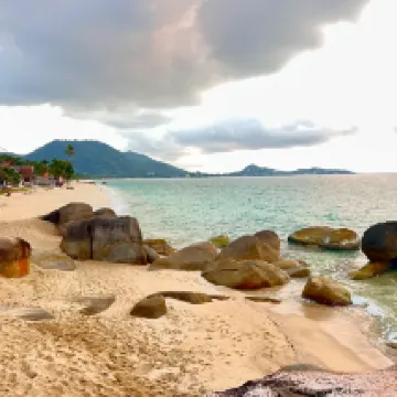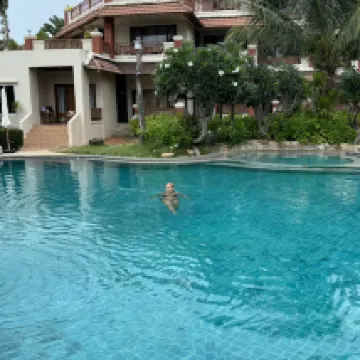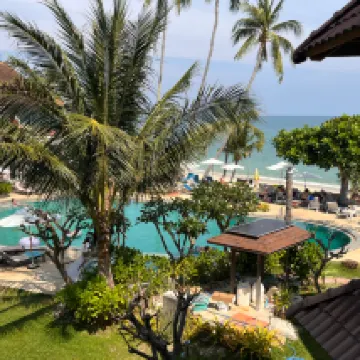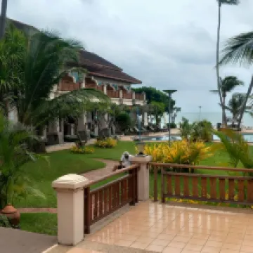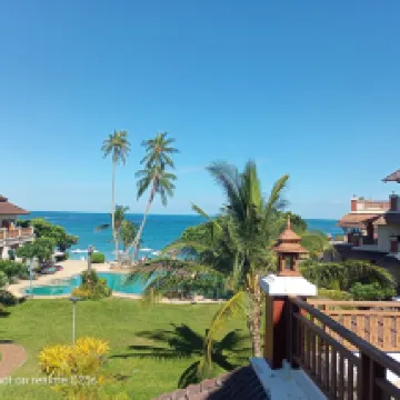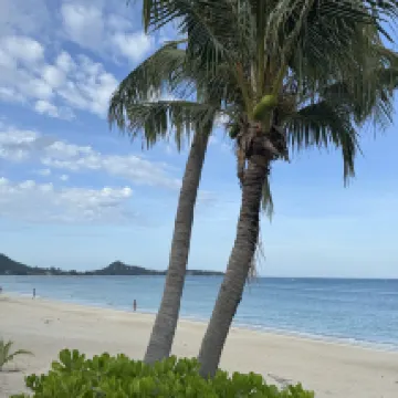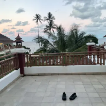 This was my first time on Koh Samui, and my first stay at this hotel was from December 25th-31st, 2025. The view was magnificent, there was a pool, and massages on site were incredibly affordable. The sea was clean, the staff were superb, and Wi-Fi was available throughout the property. I returned here from January 4th-6th, 2026, and was even more impressed, having experienced other areas and hotels in just a few days before deciding to come back. This time, I had a room with two balconies and sun loungers, and a bathroom with a sea view – simply stunning. A major plus for this side of the beach is that the sun rises directly opposite the hotel, so nothing obstructs it all day long. Nearby, there are food markets with inexpensive and delicious food, as well as a Russian restaurant and an exchange office that accepts Russian cards.
