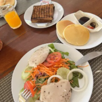 The hotel was half empty, but they checked us in, as always, at the end of the world 🥴, but overall it was comfortable, the main thing was the sea. Breakfast was all eggs in various forms, no hot food, ham, sausages, and overcooked bacon. We bought chicken for breakfast at Sevan, which was fine. 😀 I recommend it to those who like a quieter place.