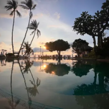 A very nice, quiet hotel with its own grounds and beach. The staff is helpful. They try to help with any requests at reception. The location is convenient – in the city center. There's a very good restaurant – 100 meters down the street to the left, facing Aloha – with a display case featuring duck on a wing. Delicious and inexpensive.