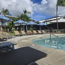 if you are staying in the hotel around 2-4pm, there's happy hour 1-1. we ordered chicken sandwich as well, it was superb. swimming pool is clean too, many beach bench available, beach towel is available as well.