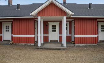 40 km north of Kolari, lake Äkäslompolo 200 m, swimming beach 1 km. Wooden row-house apartment, built 1987. Livingroom/kitchen, one bedroom with a bunk bed (bottom portion is extendable), loft (20 m2) with 2 separate beds and an extendable bunk. Electric sauna, washing room/toilet. Basic wooden row-house apartment located in the Äkäslompolo village Helukka-Ristimella area (address: Suorannantie). Location near the skiing tracks, Hotel Ylläshumina across the road. In addition: CD-player. No pets allowed. Prices include final cleaning, bed linen available for rent.