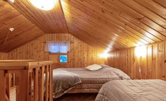 40 km north of Kolari, lake Äkäslompolo 200 m, swimming beach 1 km. Wooden row-house apartment, built 1987. Livingroom/kitchen, no fireplace, small bedroom with sofa for two persons, loft (20 m²) with 2 separate beds and an extendable bunk. Electric sauna, washing room/toilet.