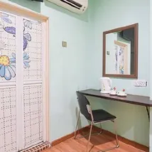 "I had a great stay at this hotel! The room was clean, well-maintained, and had a cozy atmosphere. The location was very convenient, with easy access to nearby attractions and dining spots. The staff was friendly and accommodating, always ready to assist with any requests. The amenities were simple yet thoughtful, including a workspace, a mirror, and a kettle for convenience. The air conditioning worked well, ensuring a comfortable stay. While the space was a bit compact, it was still a great value for the price. I would definitely recommend this hotel for a pleasant and hassle-free stay!"