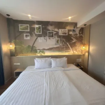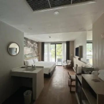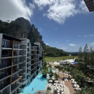 The hotel is about a 15-minute walk from the beach, and it's just 200 meters off the main road, so the location is pretty good. The rooms are nice, each with a balcony. I think the rooms with a limestone view have the best scenery. Breakfast is plentiful, served from 6:30 AM to 10:00 AM, and you can sit either indoors or outdoors, which is a nice touch. The air conditioning works very well, and the pool is great for families. The lobby is open-air, so the lack of AC there is a bit awkward. Overall, Krabi offers good value for money for a vacation!