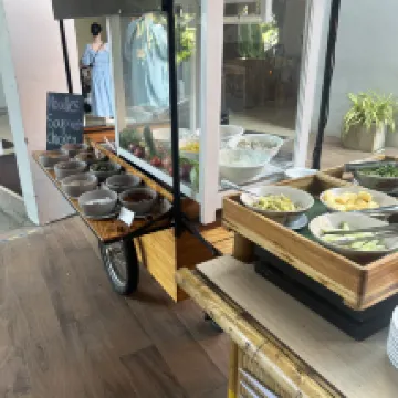 What impressed me most was the downloadable hotel application, which provides various information such as room cleaning schedules (dates and times), car booking, car rentals, and options to request additional amenities. Every morning, there are various activities such as yoga, taichi, aqua aerobic, etc other activities like making traditional Thai sweets (khanom kho).