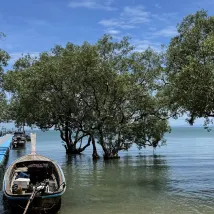 The hotel's location is very good. Although it faces the less pleasant side of the beach (Railay East), overlooking a mangrove, it is directly in front of the floating pier, the main arrival point for the beach. It also has a back exit that leads almost directly to the small town center and is just a few minutes' walk to Railay West, the more beautiful side of the beach.
