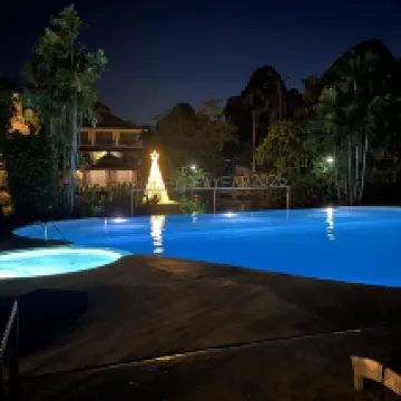 Very friendly welcome and a pleasure. Good location right next to the floating pier (very convenient) and good facilities with spotting some monkeys on the path next to the resort. Two pools at the location with one on the roof with a view to the sunrise. One convenience shop on the property and a ATM machine. We only stayed one evening but it was good for sunset on the west and sunrise on the east