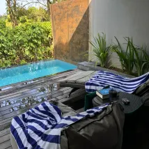 P.s if you are squirmish around bugs and tiny harmless insect, this resort is not for you. All villas are surrounded with trees and plants. Tiny bugs in the pool... We saw a cute metallic coloured beetle on the deck chair, and we had dragonfly flew into our room.