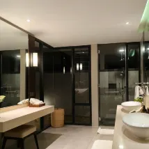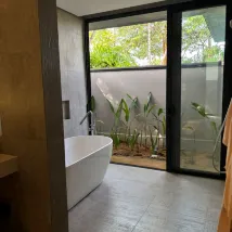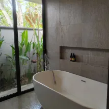 During our stay at the villa, we thoroughly enjoyed the private pool and semi-outdoor bath tub. The room was impressive, with a spacious and comfortable bed. The bathroom, connected to the outdoor platform, was stunning, and the hot, steaming bath water was a highlight. The branded toiletries, including the additional body lotion, were a great touch, especially after swimming.
