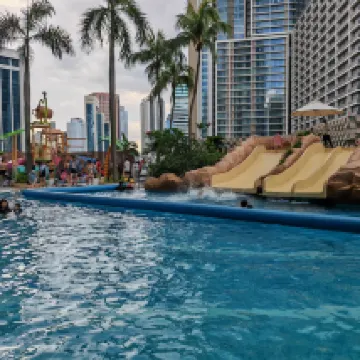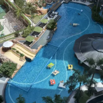 This hotel is amazing, with excellent facilities. It's perfect for families with kids, as it has two dedicated waterslides for children. The pool view is fantastic, and the hotel also offers a bar and a Chinese restaurant.