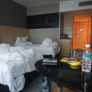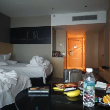 The hotel's location is excellent, and the room facilities are great. It's very close to the subway station, with a 7-Eleven right across the street. You can even see the Petronas Towers and the TV tower from the room. We booked a twin room plus an 0.8-meter sofa bed. We asked for an extra blanket, but the front desk said they didn't have any left for the day. There were some street racers speeding by late at night. The hotel's water park also looked pretty good.
