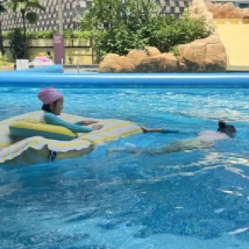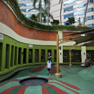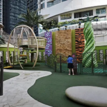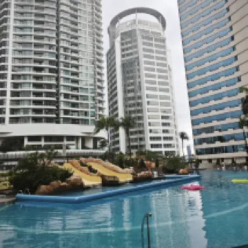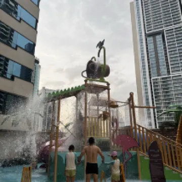 The location is super convenient! It's right in the city center. There are durian stalls and 'mamak' stalls just across the street! It was pouring rain the day we arrived, but because it was so close, we were still able to enjoy the durian and all sorts of delicious food! The kids' water park was amazing, with so many slides, so the children really enjoyed every day here 😊