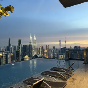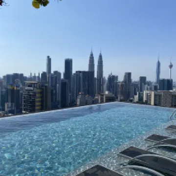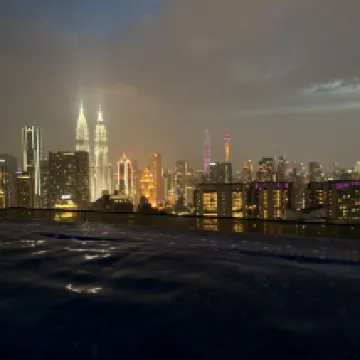 Overall, it was a great stay and excellent value for money. The room came with a washing machine and dryer, and the shower area in the bathroom was a sunken design. The only downside was a slight smell. Everything else was fine. There's an infinity pool with views of the Petronas Towers, but it's not free. Since I later moved to a closer hotel, I didn't get to take photos at this hotel's infinity pool.
