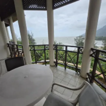 The location is perfect, with views of both Mount Santubong and the vast South China Sea. Despite coming on monsoon season, we still enjoy the view and swimming at the hilltop swimming pool. We were the only guest at the whole hilltop complex! It's a bit far from the main building where there's cafe etc but we enjoyed the quietness and the amazing view. The way to commute from our room the main building is either by the 24hr shuttle service or use the stairs downhill (beware only during the day and good weather)