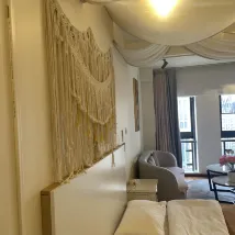 The room is very big and comfortable. There is also a projection TV. There are many snack bars downstairs. It is also close to the subway station entrance. There is also a city park outside. It is a very comfortable accommodation experience.