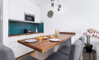 Beautiful newly renovated apartment (40m2) in a complex of only 12 units. The comfortably furnished apartment with free Wi-Fi is located on the 1st floor and has a furnished balcony with direct sea and pool view, living room with air conditioning and Smart TV sofa bed, open kitchen (fridge, microwave, coffee maker, dishwasher, toaster, juicer), bedroom (double bed 1.80 x 2 m, air conditioning, safe, beach bag, beach/pool towels) and Smart TV. Bathroom (shower/WC, shower for intimate care, cosmetic mirror, hairdryer, bathrobe, towels).