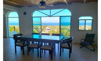 This home has four different suites which feature private balconies with sweeping views, private restroom, and comfortable beds, televisions, and A/C. A full kitchen and dinning area are available if you would like to cook your own food. In the pool area their is a bbq, a wood burning brick oven, and a beautiful garden to enjoy. Two car garage is available.