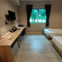 This hotel is located in the Pinthong 1 Industrial Estate, convenient for those who have business to attend to in this estate. The hotel is not very large and has a swimming pool for you to enjoy swimming. Next to the hotel is a delicious Japanese restaurant.