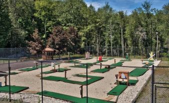 The Hideout offers access to 5 serene lakes, 2 beautiful beaches, a marina with kayak and canoe rentals, a private 9-hole golf course, 2 heated outdoor pools and a kiddie pool, as well as outdoor basketball, tennis, and volleyball courts. With playgrounds, ski slopes, snow tubing, ice skating, and hiking trails, there's something for everyone. The recreation center boasts indoor courts, a game room, and a gym, while the art center and mini-golf provide additional leisure activities. To top it off, enjoy delectable dining at the Club House restaurant and unwind at the Tiki Bar.
