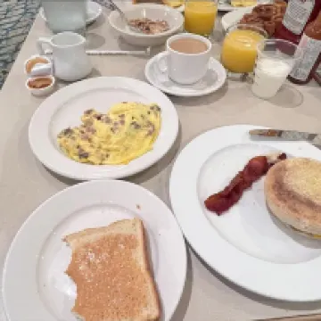 The hotel is at a great location, close to everything. The staff is very friendly and helpful. The room is a little smaller than expected especially the bathroom counter is hardly enough to hold personal hygiene stuff for more than 1 person. The breakfast is buffet type and kids eat free.