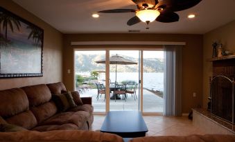 The luxury living room boasts a direct view of the entire south end of the lake, looking across towards Clearlake Oaks. In the living room is a (2023) large sectional sofa with 3 electric recliners and USB ports.