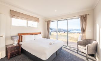 The modern Supernova B is a 2-bedroom townhouse that has a stunning view of Lake Tekapo, Mt. John, and the Alpine ranges. Two large king bedrooms share one modern bathroom with floor heating, which sleeps up to 4 people. A hanging swing chair in the lounge is the perfect place to read your favorite book and enjoy the lake view. Young people will enjoy hanging around in the bean bag area, watching TV, or playing card games. Handy air-conditioning will keep you warm in winter and cool in summer. Well-equipment kitchen facilities, unlimited free WIFI, amenities, and on-site parking make this property perfect for a small family.